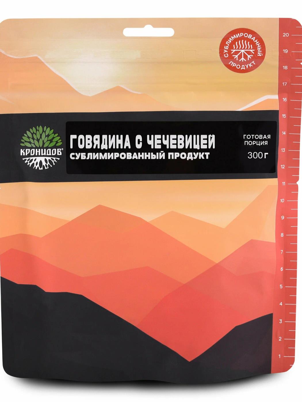 Говядина с чечевицей от «Кронидов» — - пикантное и полезное блюдо, имеющее насыщенный аромат и вкус. Оно обладает оптимальной пищевой и энергетической ценностью и внесёт разнообразие в ваш походный рацион.