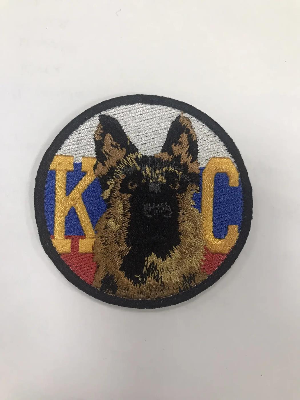 Шеврон с изображение собаки на фоне триколора и аббревиатурой "КС" (Караульная служба). Диаметр 7,5 см.